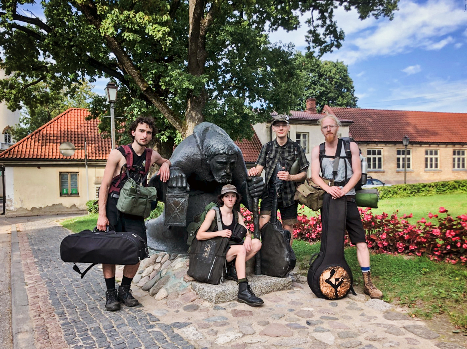 Par folkpanka grupas Grēcīgie partizāni tradīciju ir kļuvušas velo un stopēšanas tūres pa Latviju. Attēlā – Arno kopā ar saviem draugiem Aneti, Pūķi un Nauri. Foto no Grēcīgo partizānu personīgā arhīva